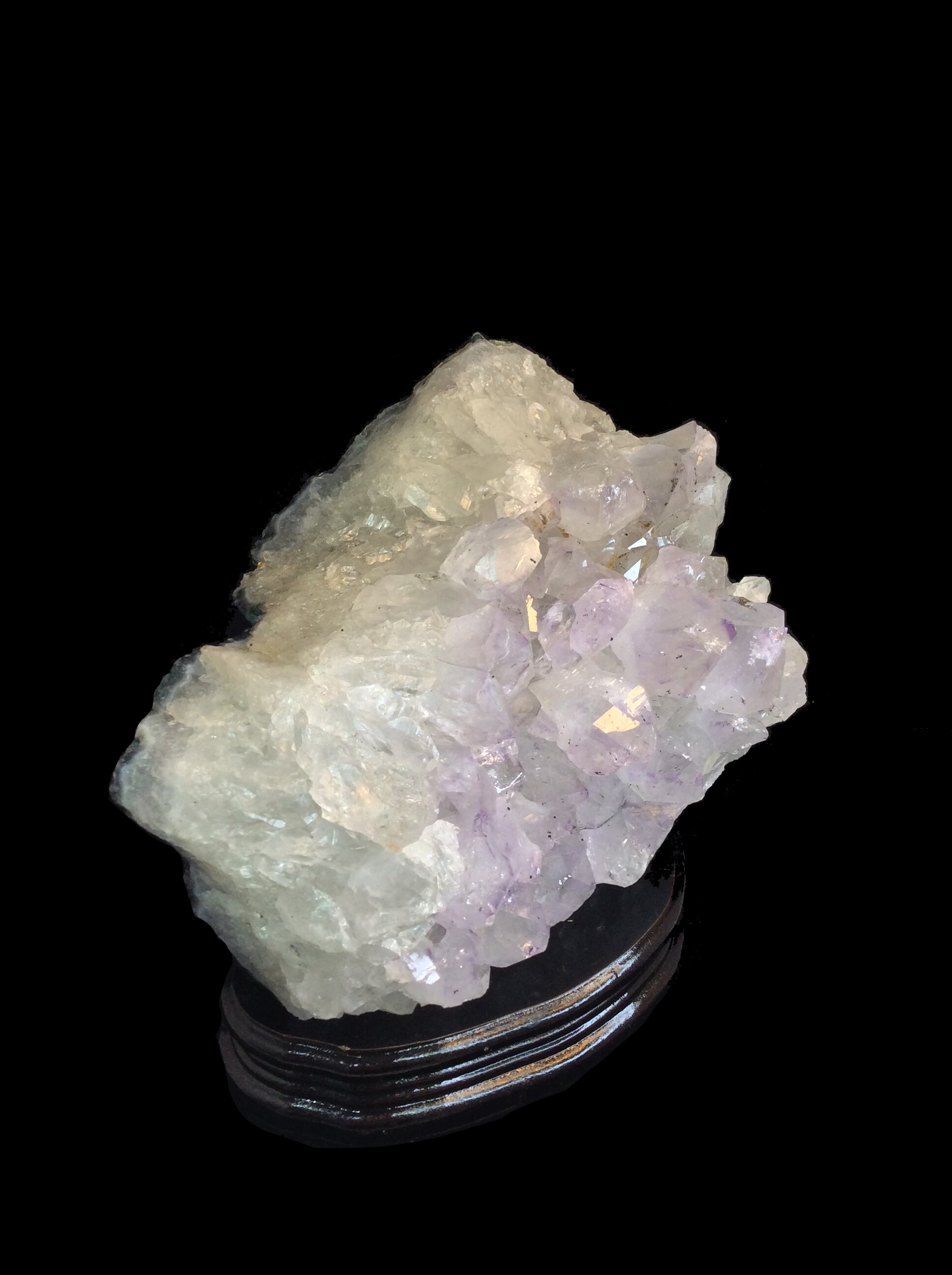 似た形状のものにアメジストドームがありますが、ドームは内側にアメジストの結晶が付いたものを言い、クラスターは外向きに結晶が付いているものをいいます。